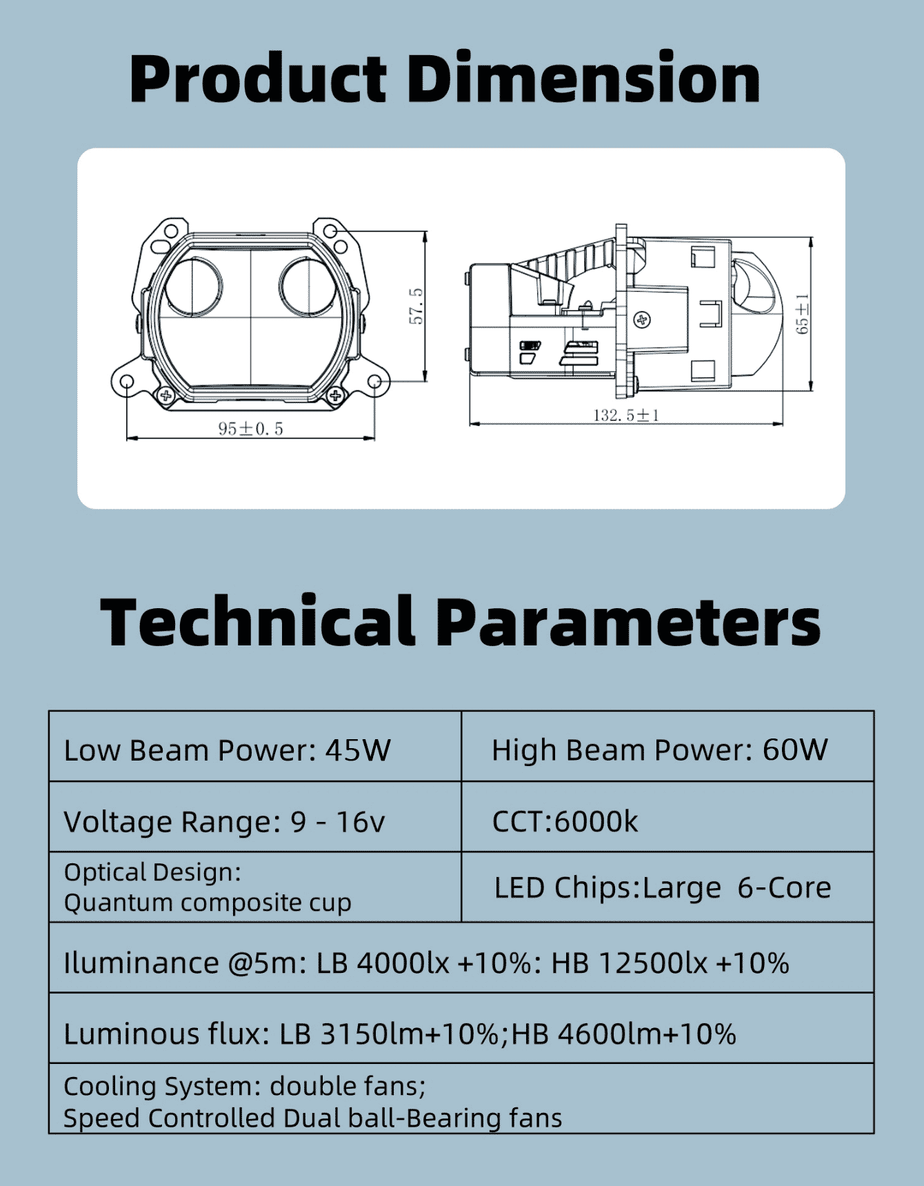 EVOLUX Series – 60W Bi LED Headlight Projector with Dual HBA