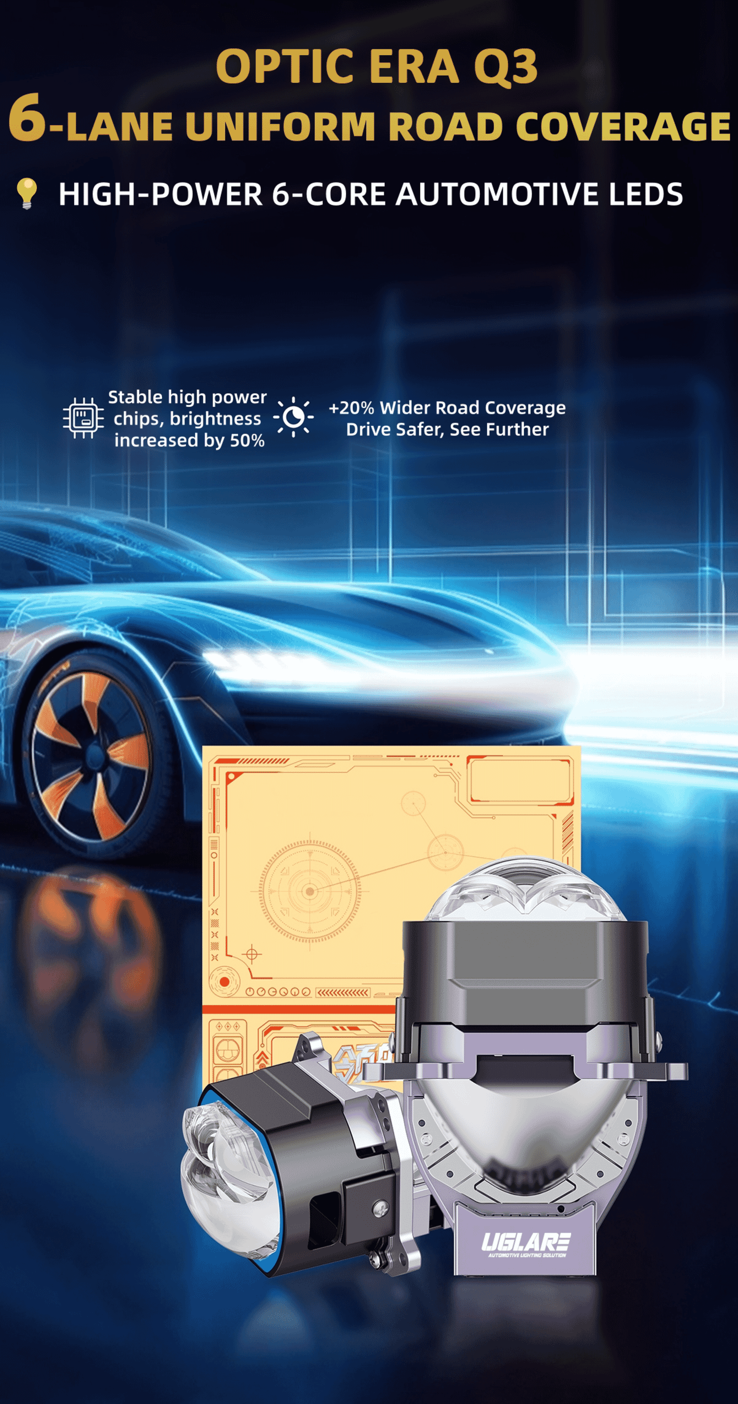 OPTICERA Q3 – 3.0 inch 82W BI-LED Headlight Projectors with Dual HBA